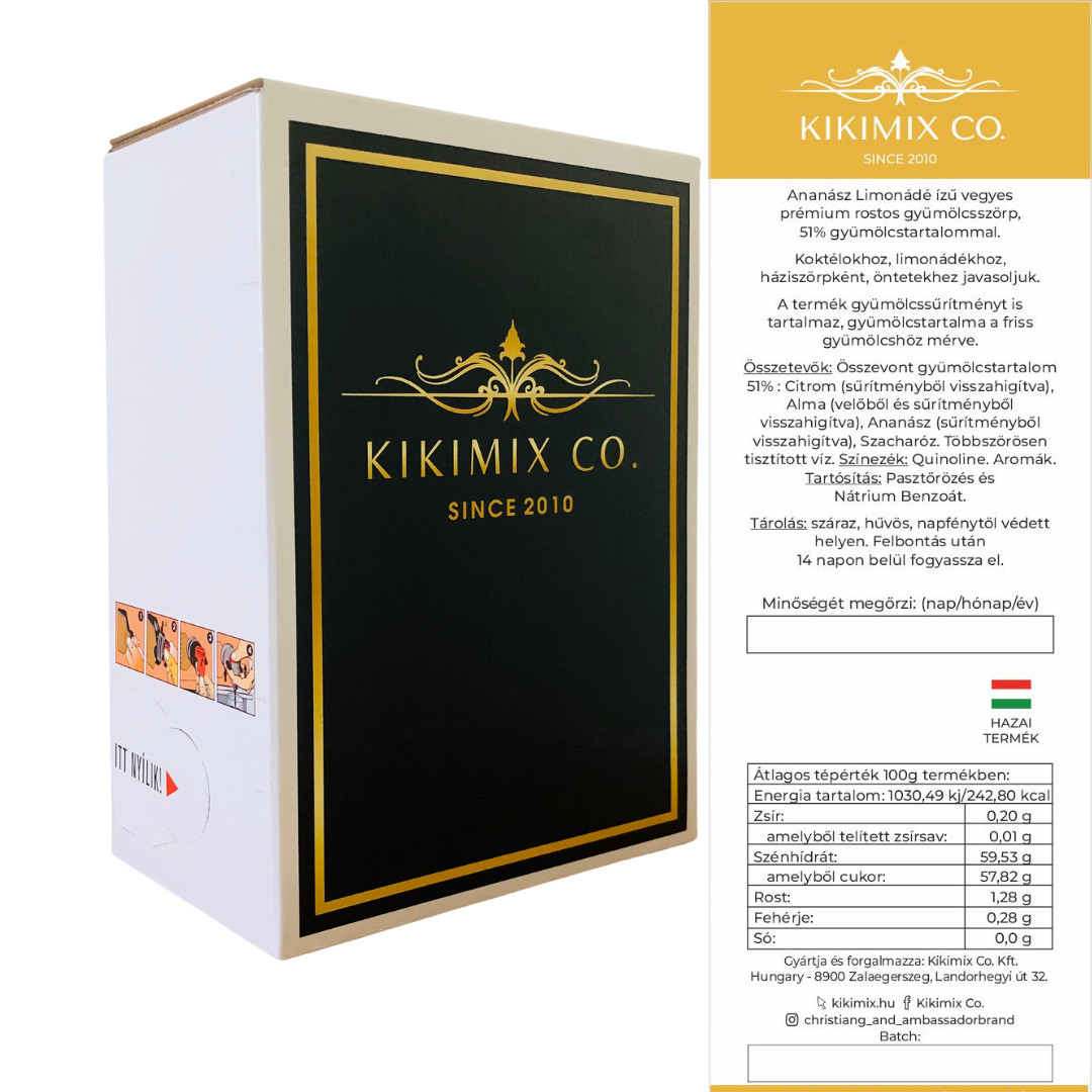 Alapanyagainkat, lehetőség tekintetében egyre növekvő mennyiségben hazánkban vásárolt gyümölcsök adják. Kis kiszerelést kedvelőknek 0,5L-es üvegbe palackozzuk, a nagy felhasználóknak a gazdaságos 3kg-os BIB dobozos csomagolásban is kapható. Ebben az esetben nem igényel hűtést és mégis 1,5-2 év szavatossággal rendelkeznek. A nagy kiszerelés esetén Bar-os adagolót biztosítunk.